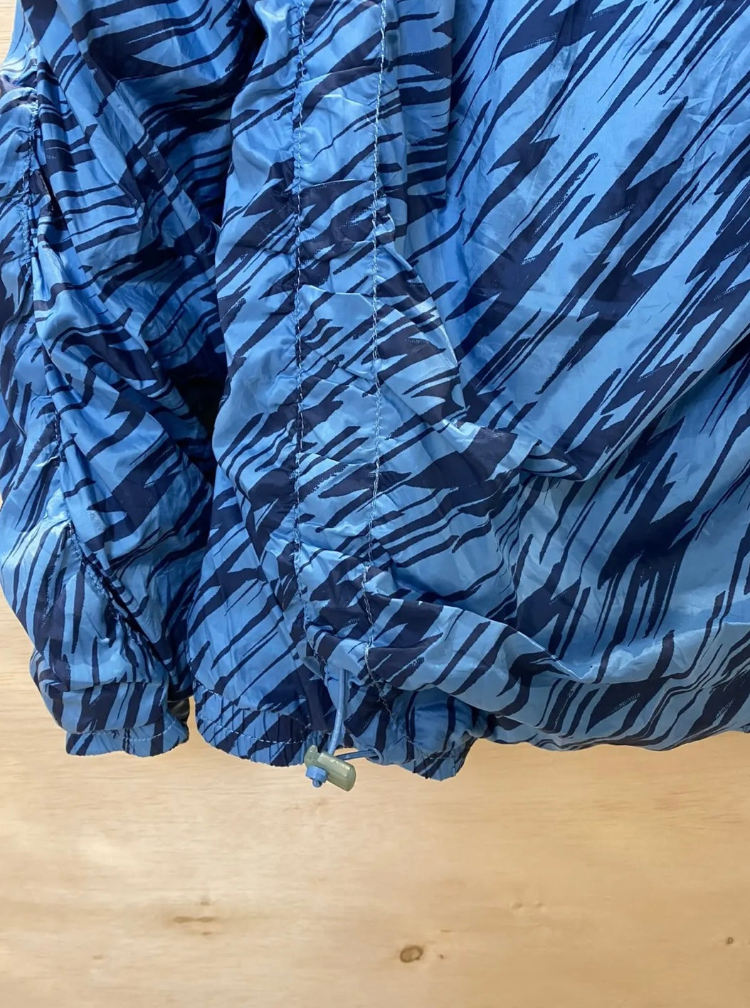 This bold Adidas × Stella McCartney Printed Performance Jacket fuses high-fashion flair with athletic functionality. Featuring a striking multi-color print, the jacket includes performance details such as a full zip front, drawstring hood, ventilated mesh lining, and adjustable hem — ideal for workouts or streetwear styling.