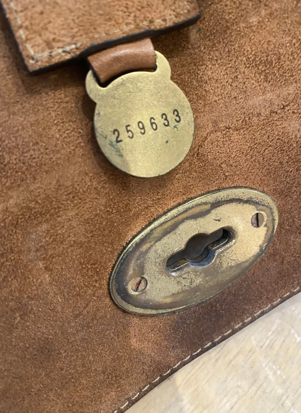 - Hardware: Gold-tone Postman’s Lock closure; foil-stamped Mulberry logo inside